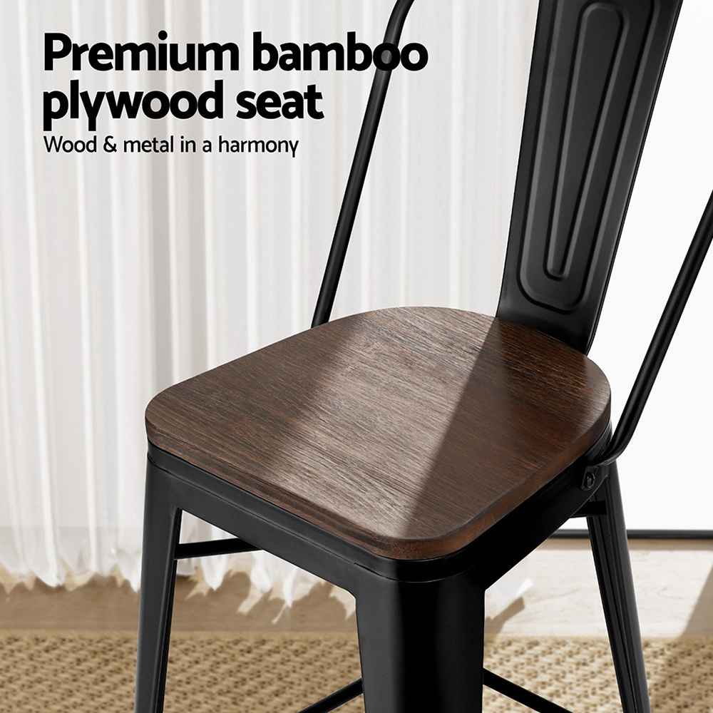 Bring a touch of modern industrial charm to your home or business with this set of 2 metal bar stools with wooden seats. Designed with both style and functionality in mind, these stools feature a sturdy bamboo plywood seat and a reinforced steel frame that ensures lasting durability.