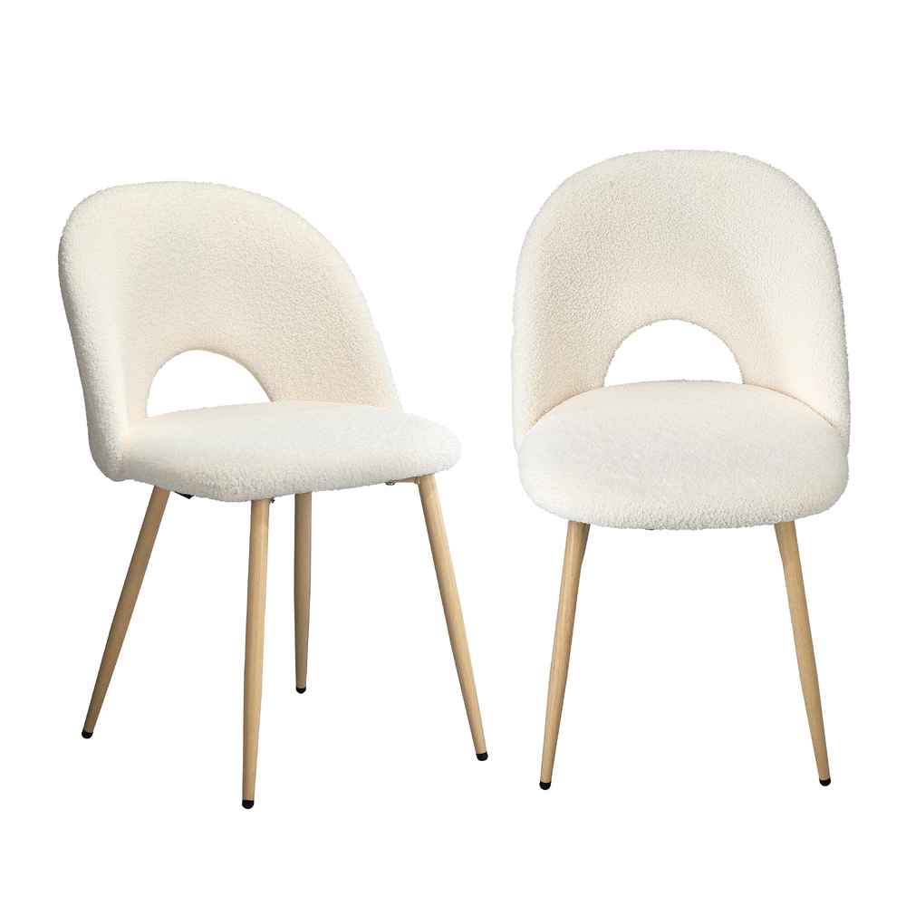 Upgrade your dining space with our luxurious dining chair set, designed for both style and comfort. Featuring plush faux sherpa upholstery and a contemporary silhouette, these chairs blend seamlessly into any decor while providing a cosy seating experience.