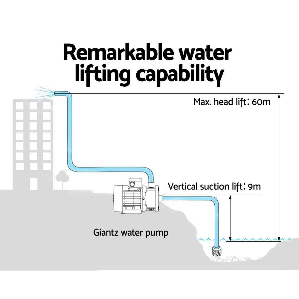 With a maximum flow of 150L/min and a 60m head, this pump easily pushes water up to two storeys high. Whether for daily irrigation, household supply, or large-scale use, it’s built to perform reliably and continuously.