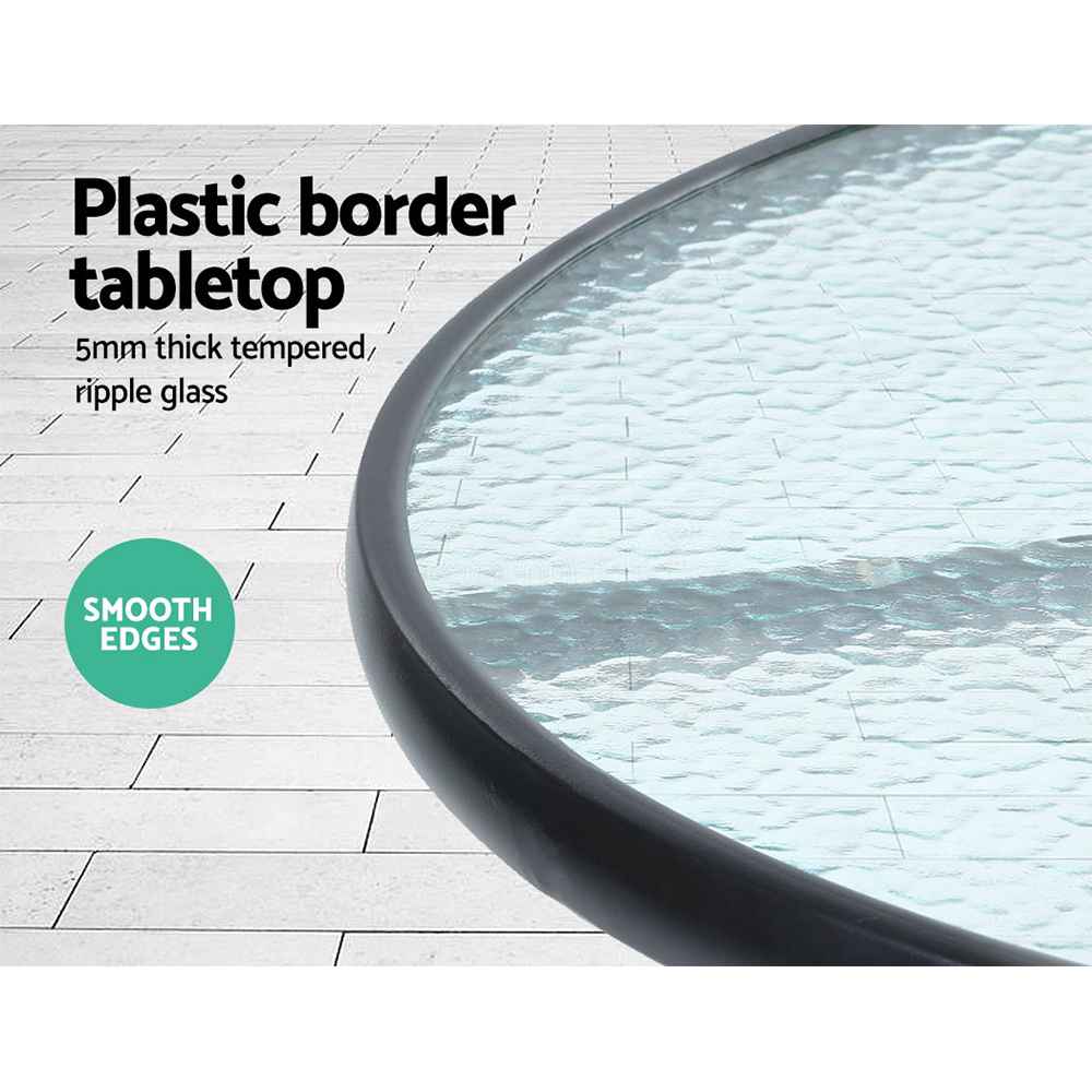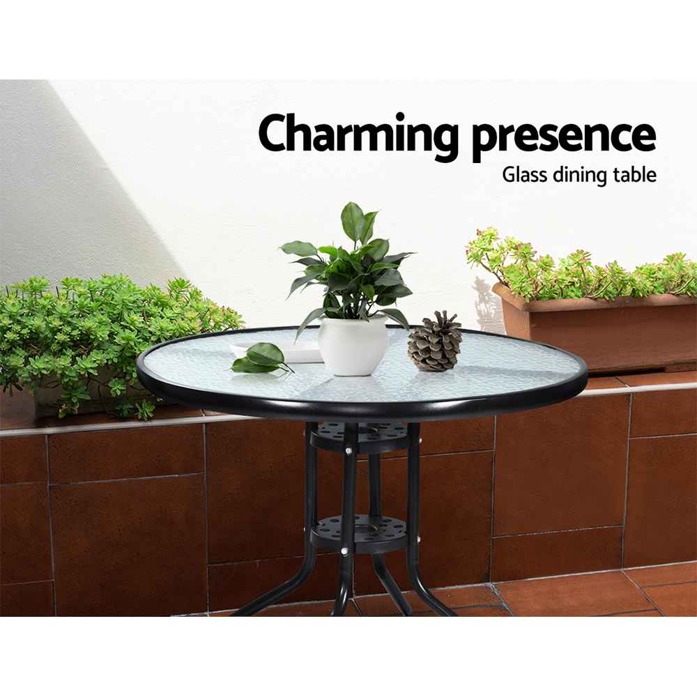 The round tempered glass tabletop delivers a modern look while remaining highly practical. Its smooth surface is easy to clean, and the built-in parasol hole lets you add shade on sunny Australian days.