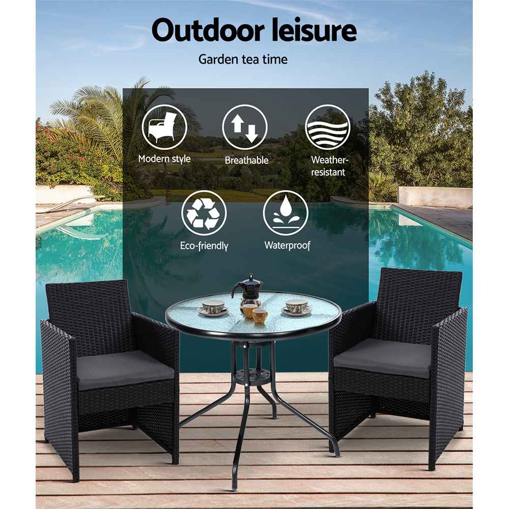 Create a welcoming space to relax, chat and enjoy a cuppa with the Hugo Outdoor Bistro Set. Designed with a chic, contemporary look, this compact yet comfortable setting is perfect for patios, balconies, decks and courtyards, and looks just as good indoors.