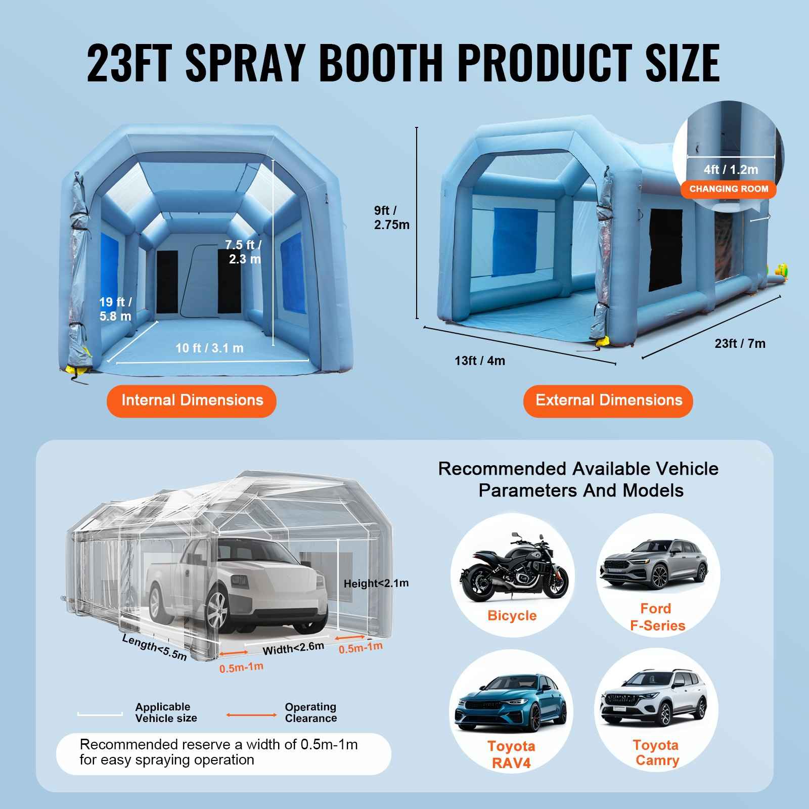 Upgrade your setup with a spacious inflatable paint booth designed for painting, detailing and repair applications. With durable Oxford cloth and PVC construction, dual blowers, efficient filtration and a roomy interior, it is a practical choice for automotive, motorcycle and workshop use.