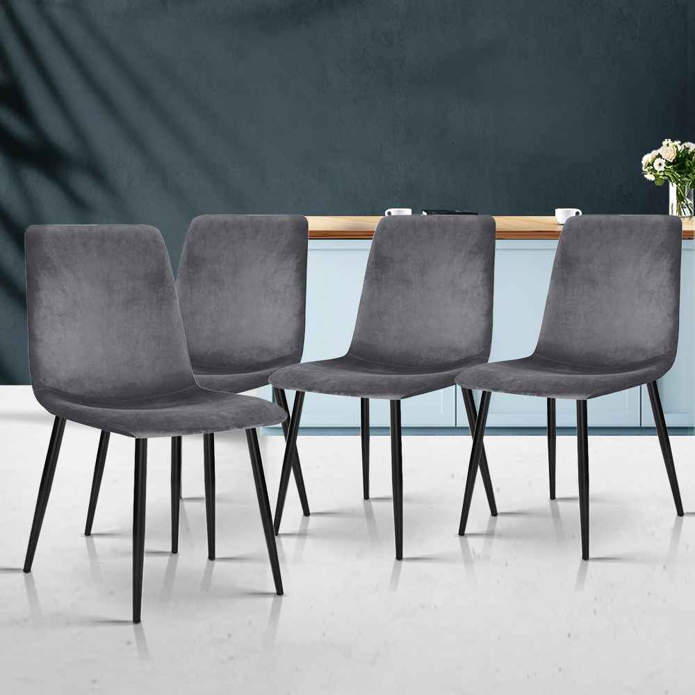 Modern Dining Chair – Set of 4 (Grey Velvet)