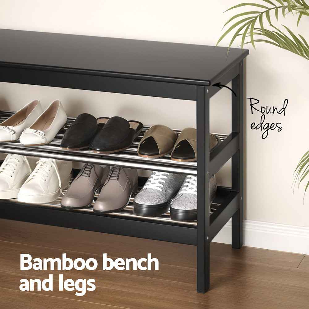 Crafted from natural bamboo and reinforced with stainless steel tubes, this shoe storage bench is both durable and reliable. The rounded edges not only enhance its contemporary appearance but also help prevent accidental bumps and scrapes, making it suitable for family homes.