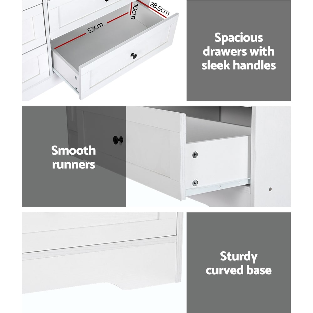 Keep your bedroom or living space organised with our sleek 6-drawer chest, designed for both style and functionality. Featuring smooth-glide drawers and a durable construction, this piece offers ample storage while enhancing your room’s aesthetic.