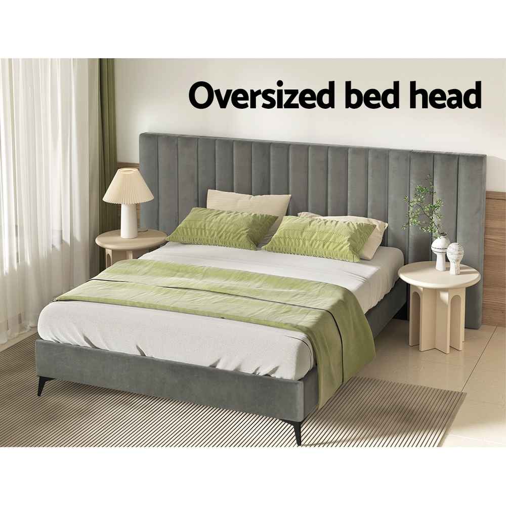 Upgrade your bedroom with this luxurious velvet bed frame, designed to combine style, comfort, and durability. Available in Queen and King sizes to fit standard Australian mattresses. Bring home your new favourite bed today!
