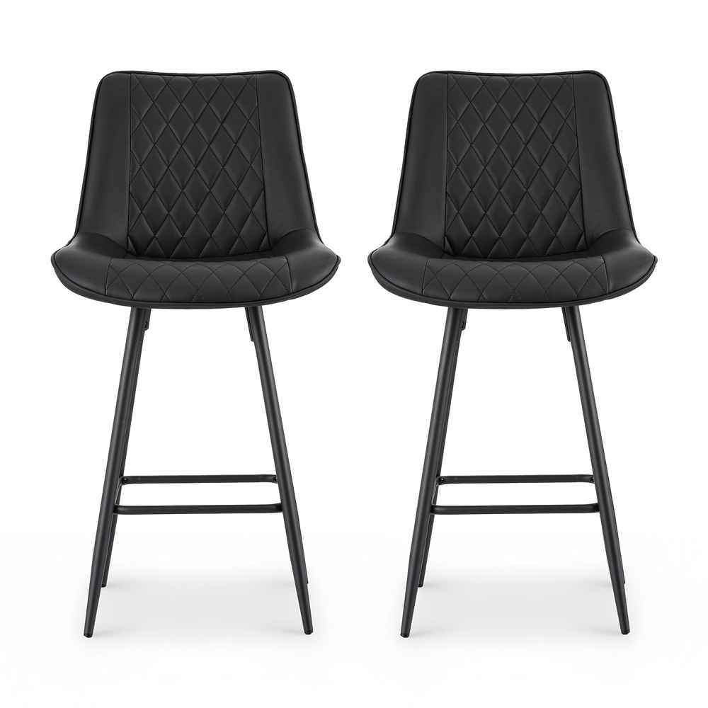 Lucerne Diamond PU Leather Bar Stools Black (Set of 2)