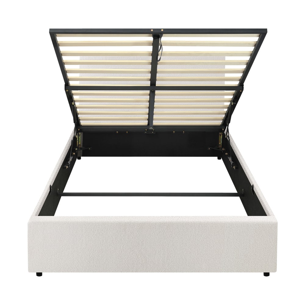 LUFT Boucle Bed Frame Gas Lift w/ Storage White – King Single