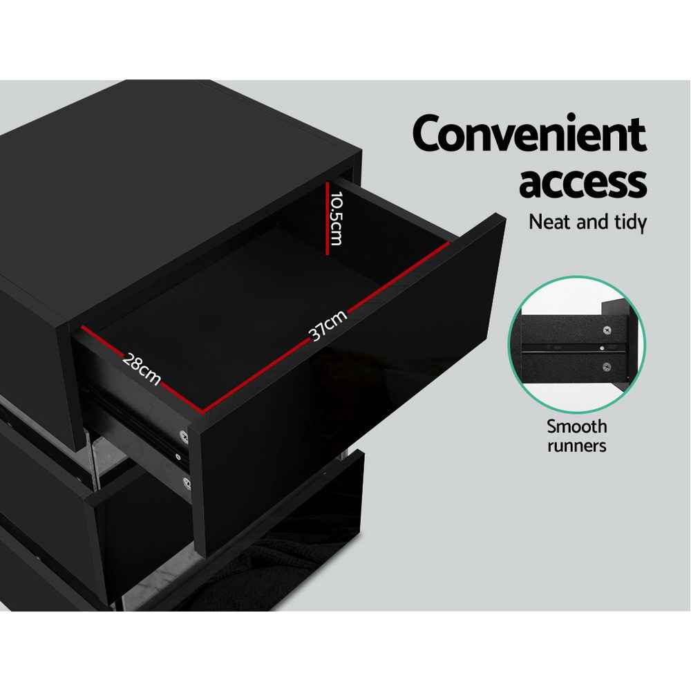 Tired of fumbling for the light switch in the dark? Elevate your bedroom experience with our LED Bedside Table, designed to combine functionality, style, and modern technology. This sleek and practical bedside companion offers a unique lighting feature with customisable LED colours, ample storage, and a high-gloss finish that adds sophistication to any room.