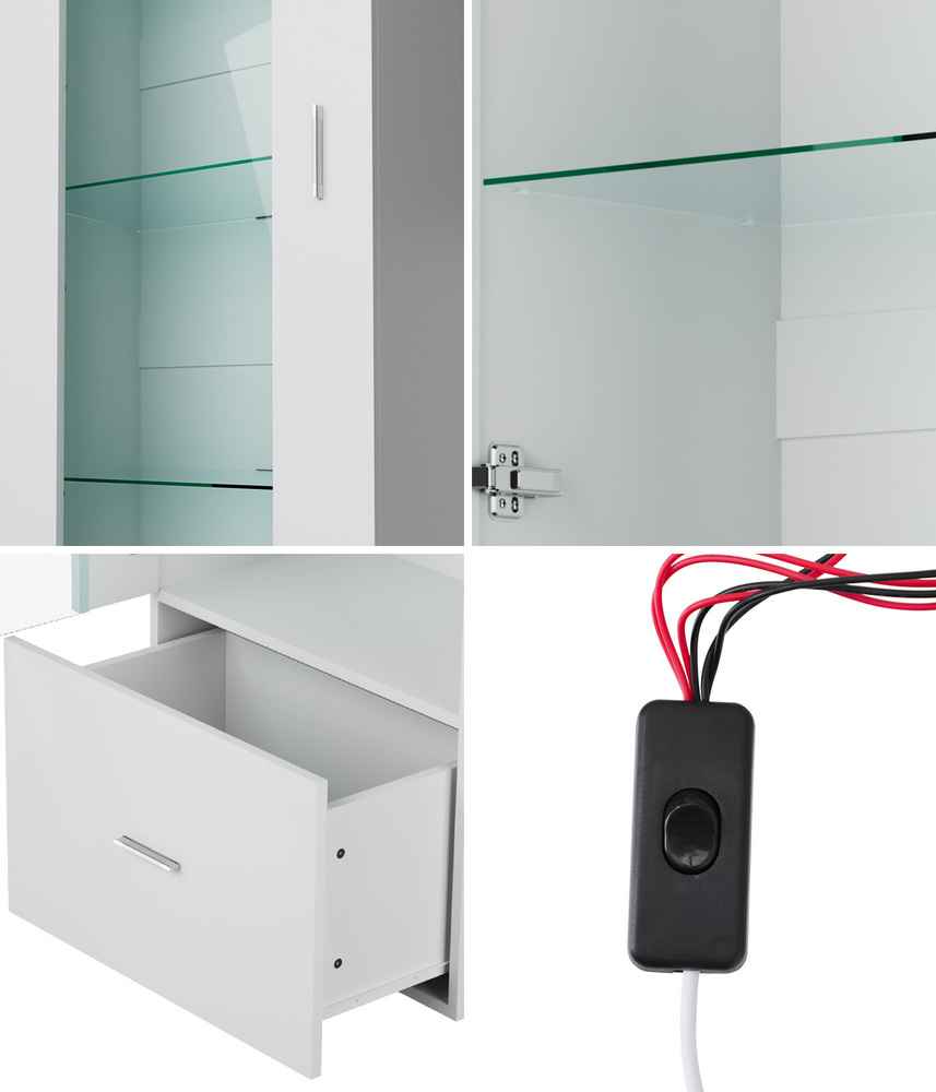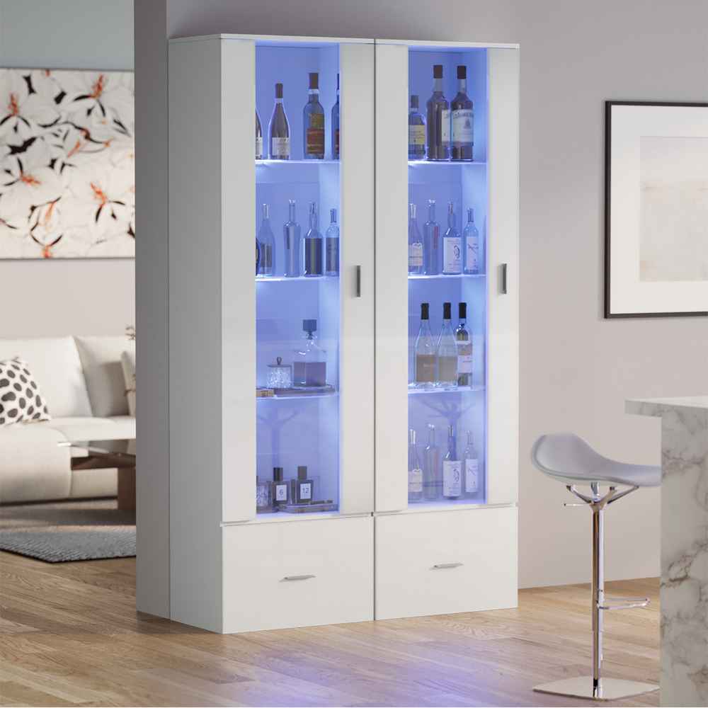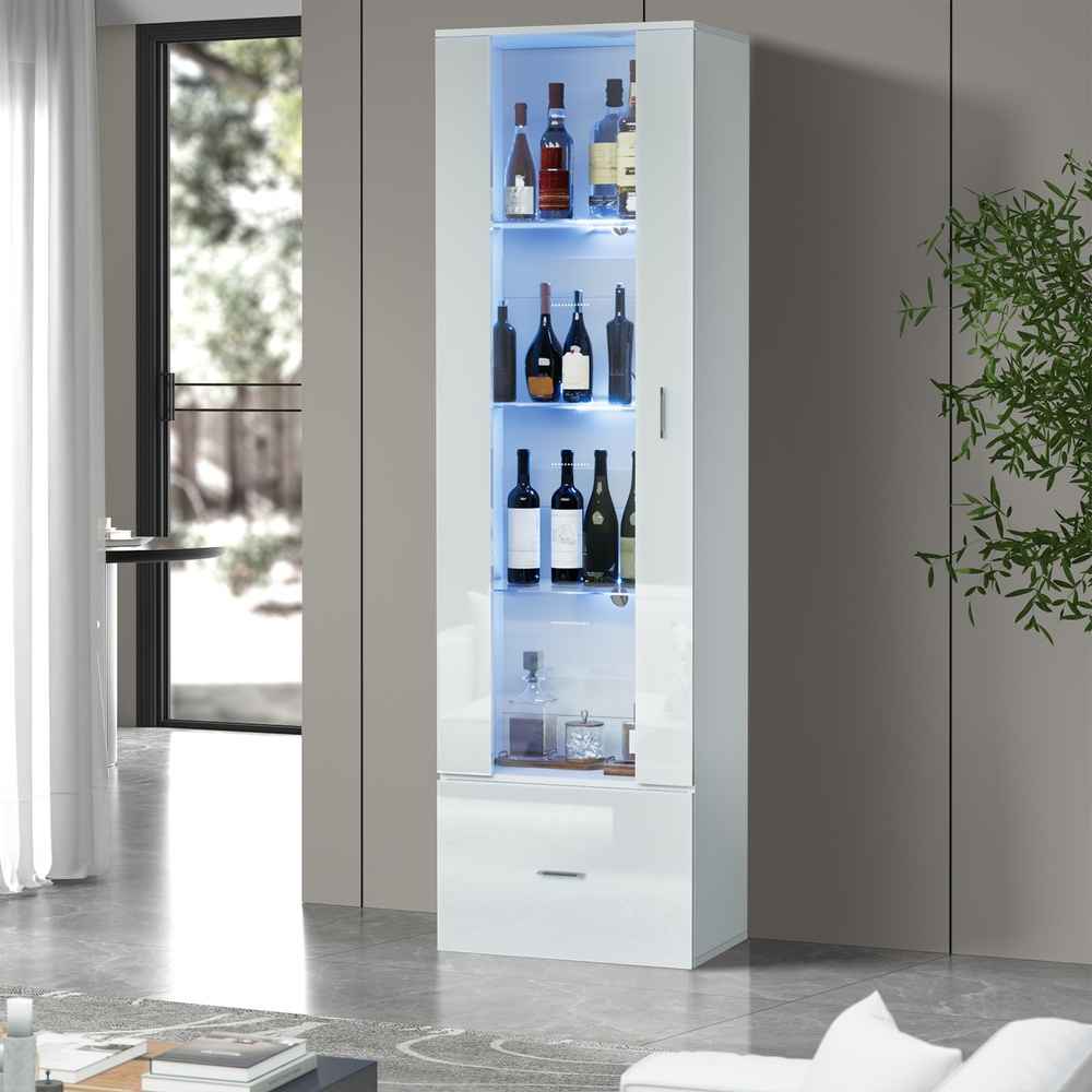 LumiVault LED Display Cabinet – White Glass Shelving Cabinet with Blue LED Light