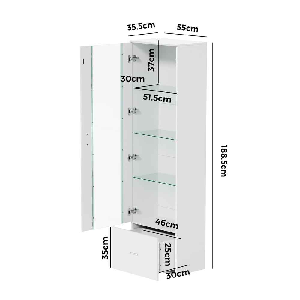 Overall dimensions: 55cm x 35.5cm x 188.5cm