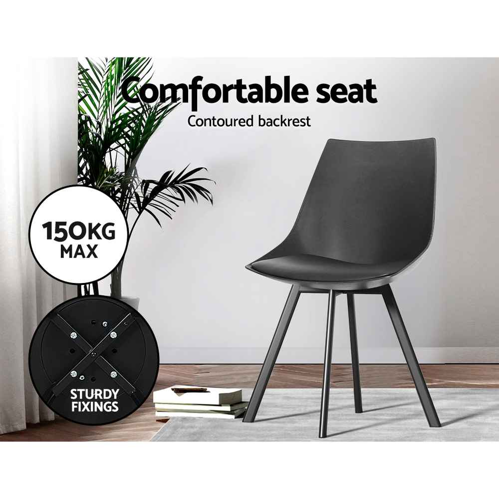 Set of 2 Black Modern Dining Chairs with Steel Legs
