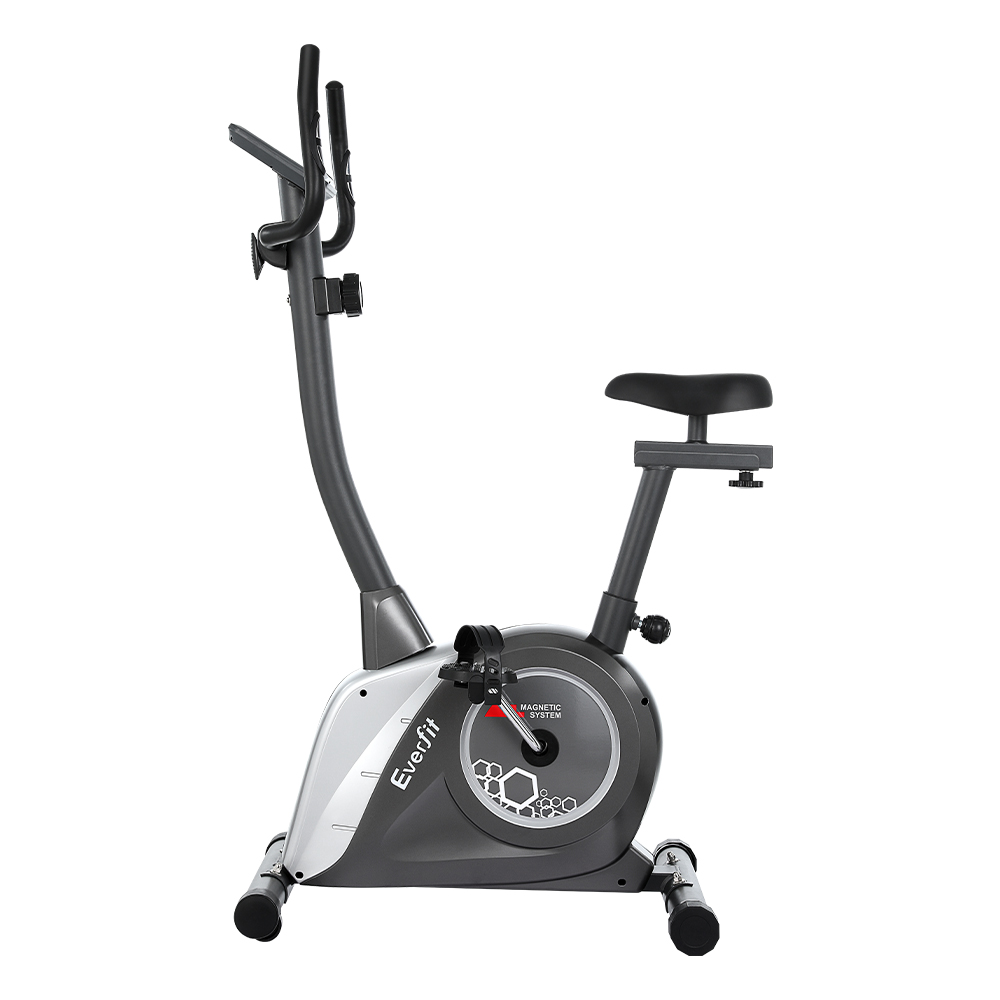 Never miss a workout with an Exercise Bike. Our gym-quality equipment fits perfectly in your home, helping you achieve your fitness goals one day at a time. This dual-action exercise bike features an magnetic resistance system with a 4kg heavy-duty steel flywheel and 8 manual resistance levels for a full-body workout. Adjust the thick padded seat horizontally, vertically, backwards and forwards for the ideal fit. The digital display and wireless pulse receiver track multiple fitness parameters where you can see them. Non-slip pedals with protective straps keep your feet firmly in place, while built-in wheels make the bike easy to move. Best of all, an in-built phone/tablet holder allows you to watch your favourite movies, shows or workout mixes as you exercise. So what are you waiting for? Start your very own home gym today with an Exercise Bike.