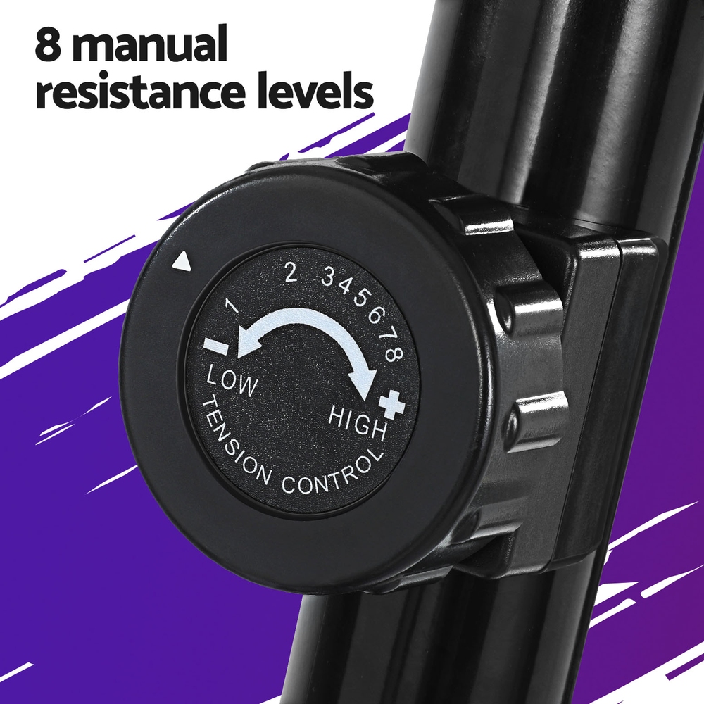 Never miss a workout with an Exercise Bike. Our gym-quality equipment fits perfectly in your home, helping you achieve your fitness goals one day at a time. This exercise bike features an magnetic resistance system with a 2kg heavy-duty steel flywheel and 8 manual resistance levels for a full-body workout. Adjust the handlebar and thick padded seat vertically for the ideal fit. The digital display and wireless pulse receiver track multiple fitness parameters where you can see them. Non-slip pedals with protective straps keep your feet firmly in place, while built-in wheels make the bike easy to move. Best of all, an in-built phone/tablet holder allows you to watch your favourite movies, shows or workout mixes as you exercise. So what are you waiting for? Start your very own home gym today with an Exercise Bike.