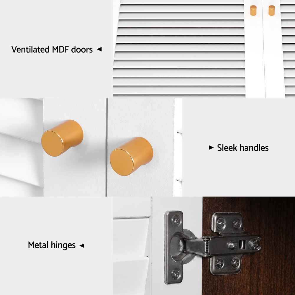 Built with a sturdy particle board frame and finished in an easy-care paper veneer, this shoe cabinet is designed for durability and low maintenance. The ventilated MDF doors promote airflow, helping to reduce odours and keep footwear fresher for longer.
