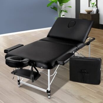 Massage Table 85cm Portable 3 Fold Aluminium Beauty Bed Black
