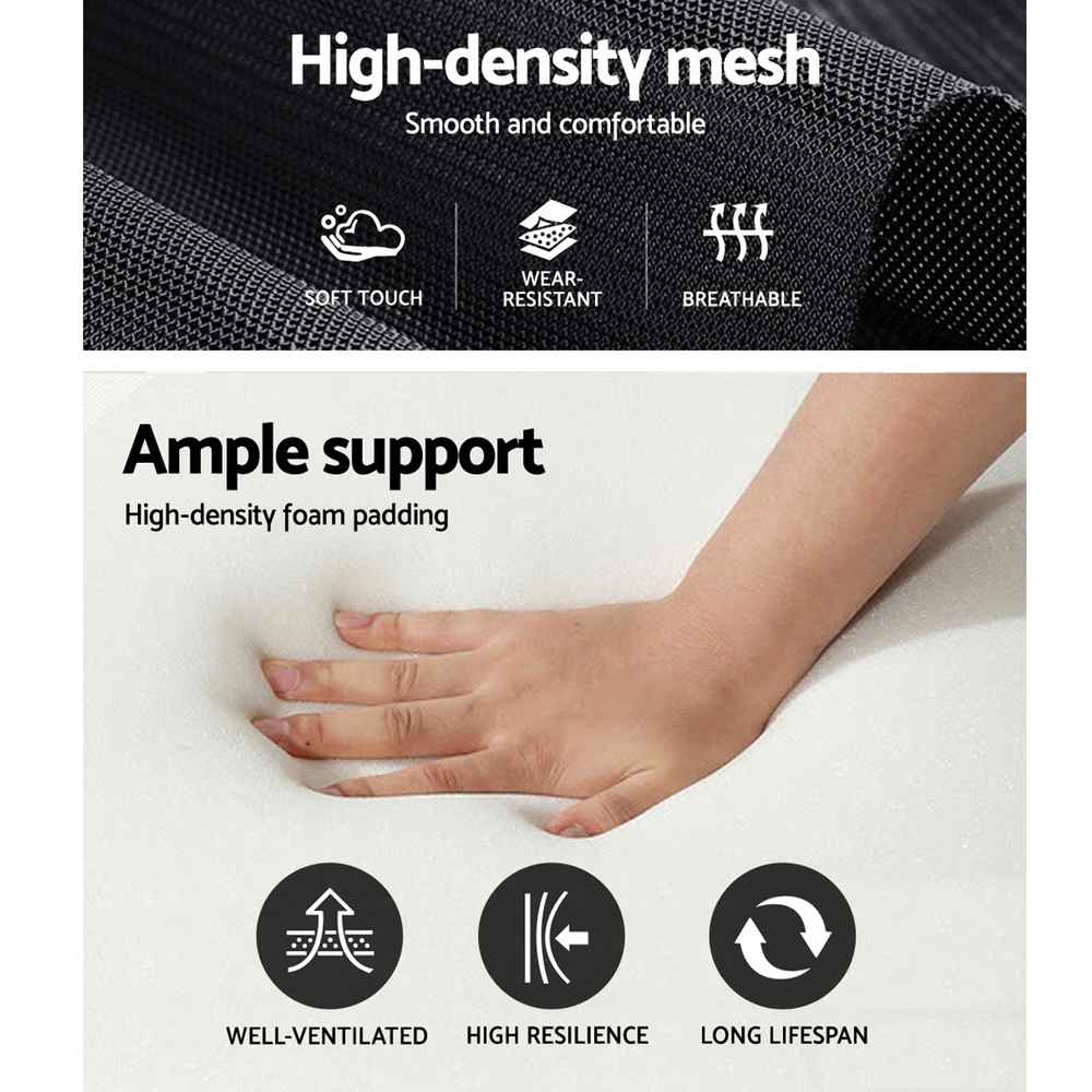 • Materials: Premium mesh, high-density foam, steel frame, nylon base