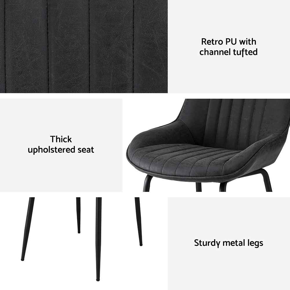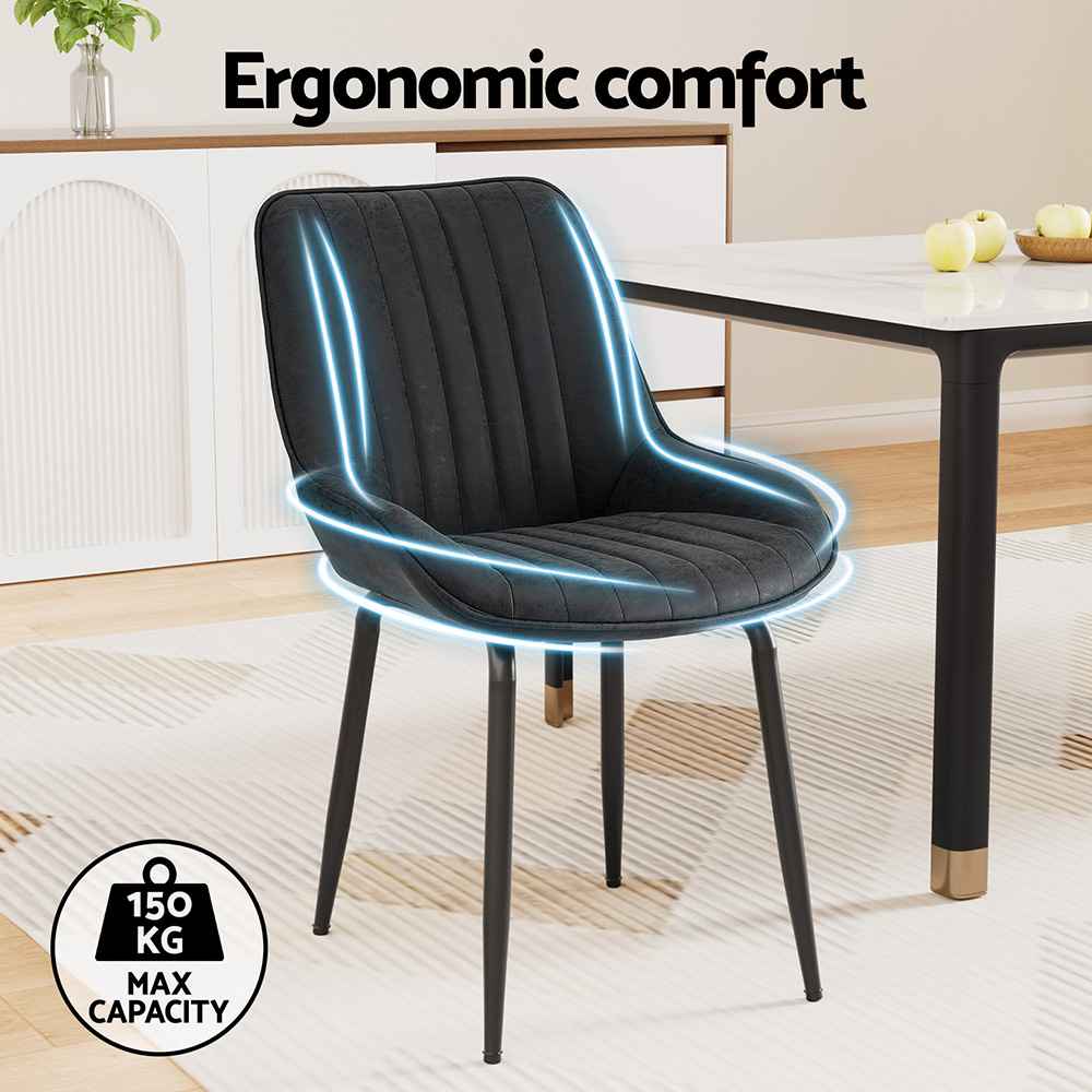 Featuring a classic channel-tufted design upholstered in premium PU leather, these dining chairs combine style and practicality. The soft padding ensures a comfortable seating experience, while the ergonomic curved backrest provides excellent support for extended sitting.