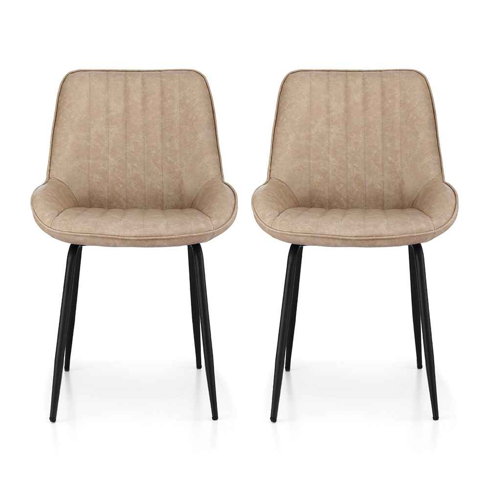 Modena Accent Retro PU Leather Dining Chairs Khaki (Set of 2)