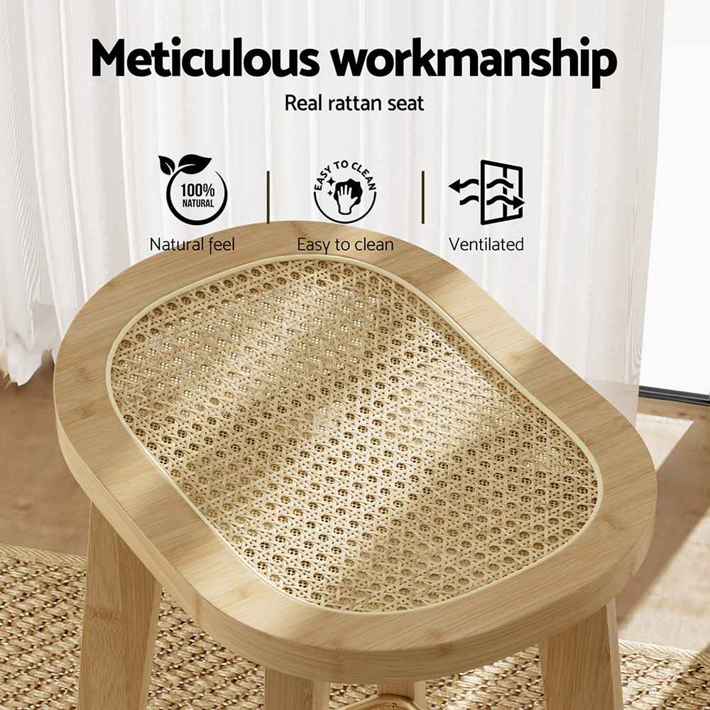 Stylish Bamboo & Rattan Bar Stools – Set of 2