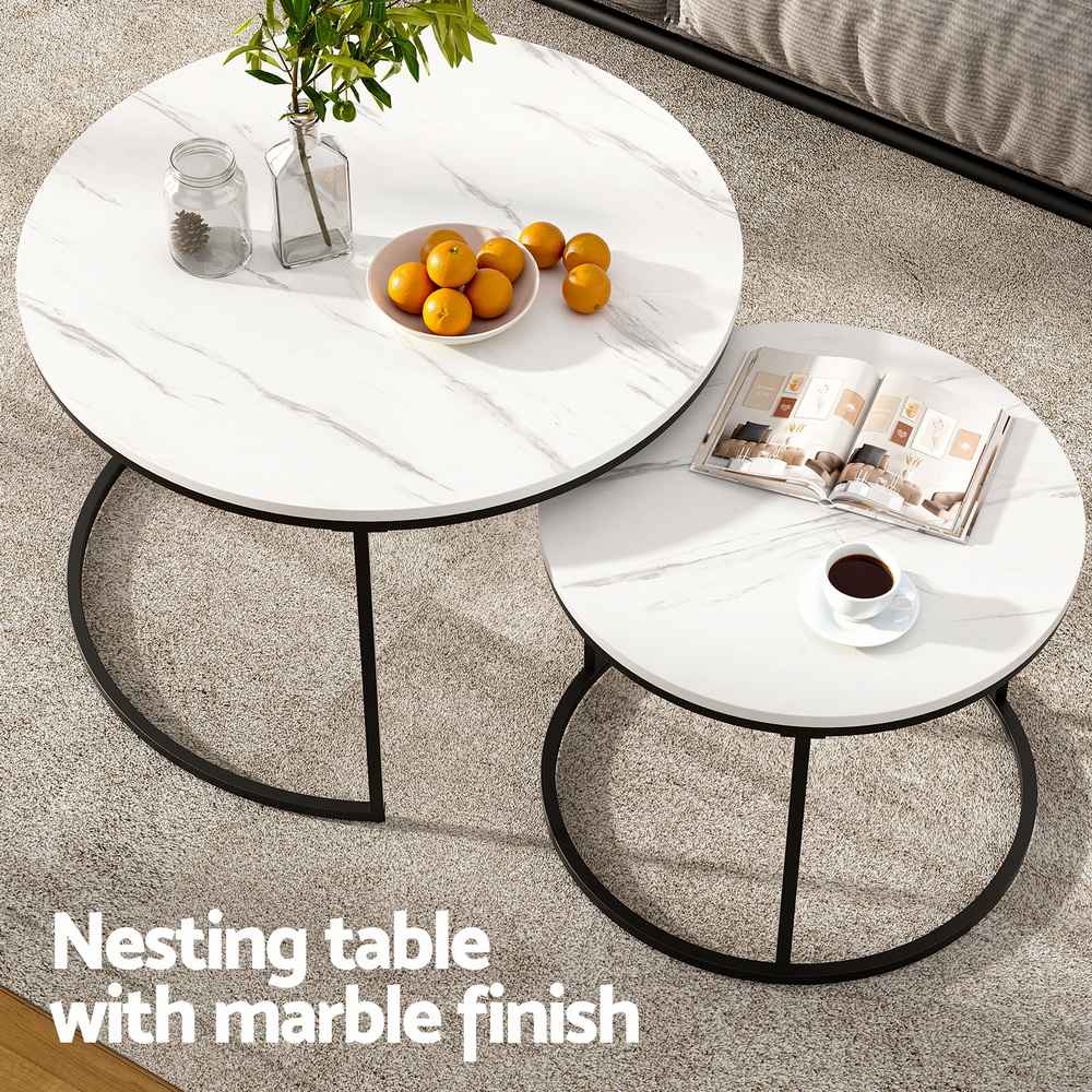 Nesting Coffee Table Set of 2 – Modern Marble-Effect Design