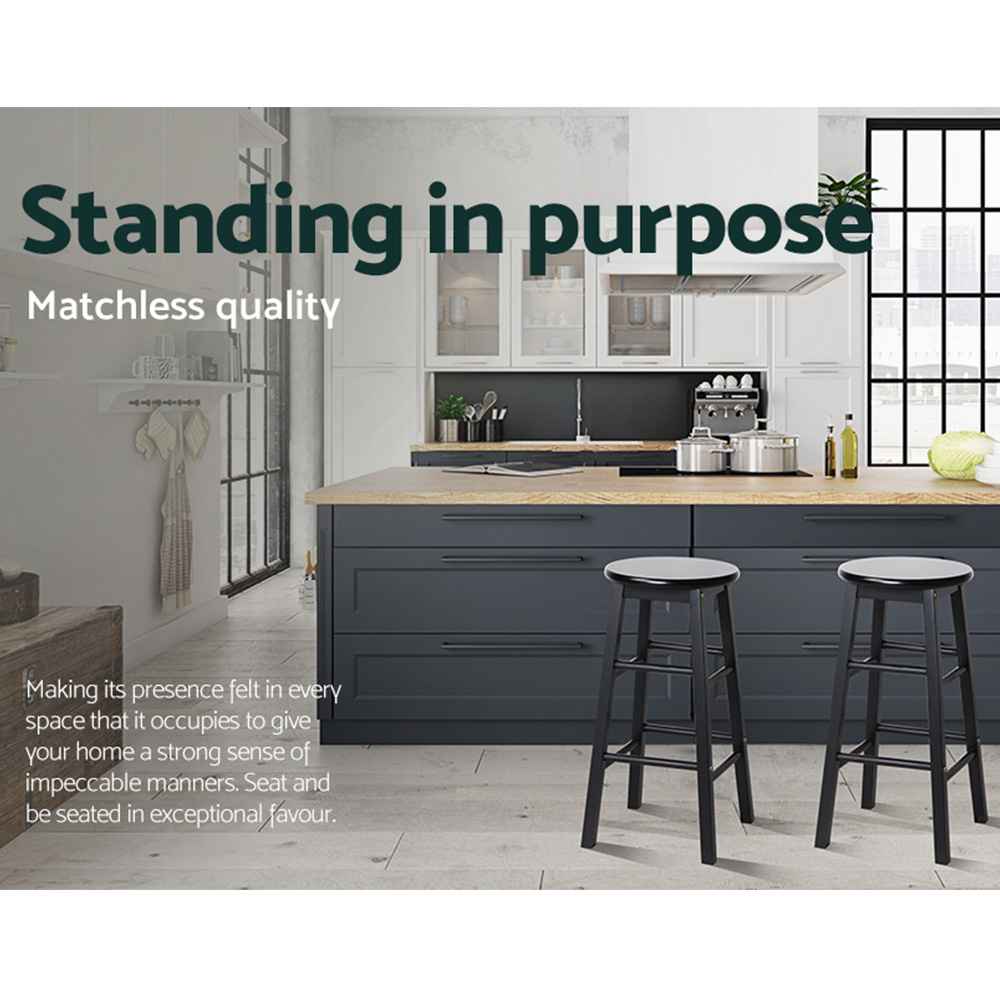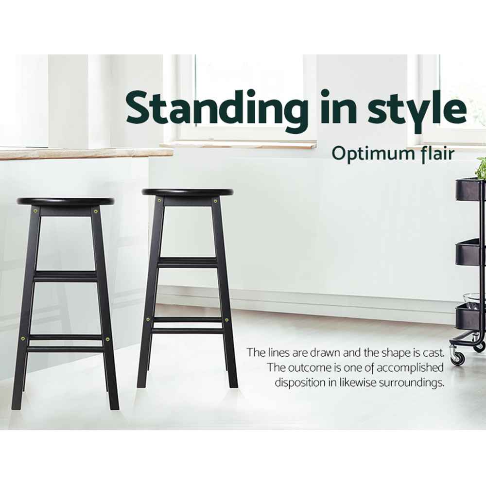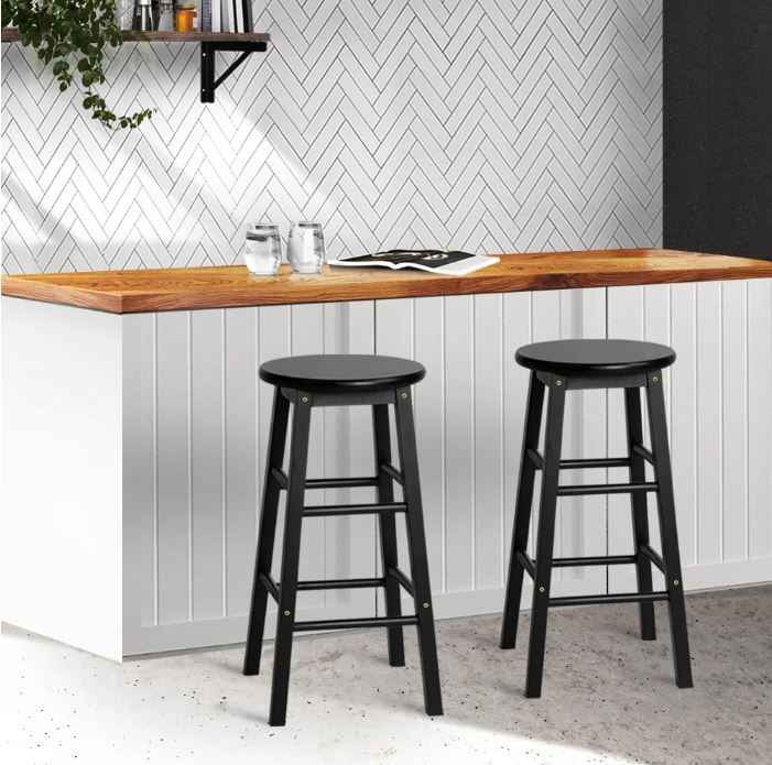 Nonna Round Wooden Bar Stools – Black (Set of 2)