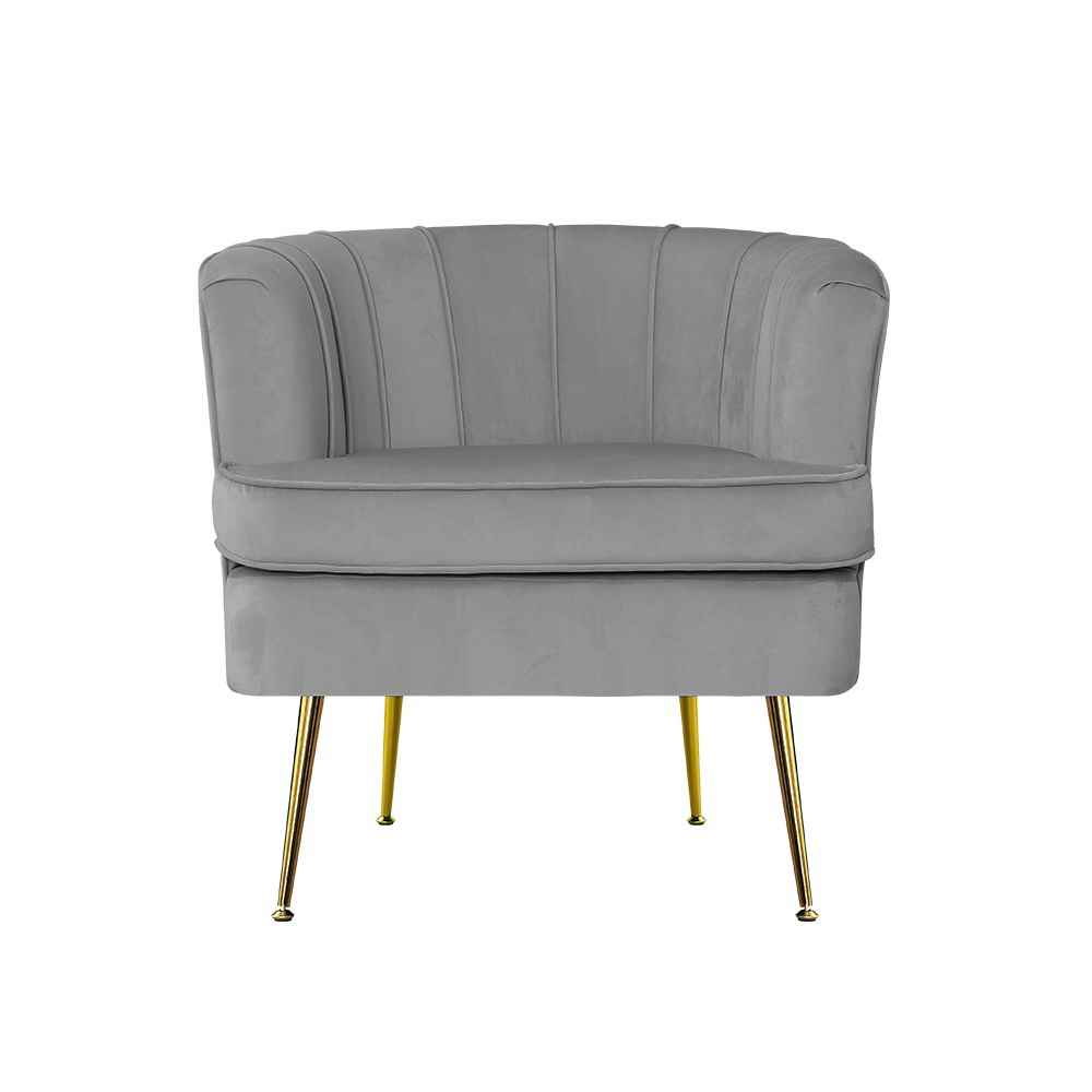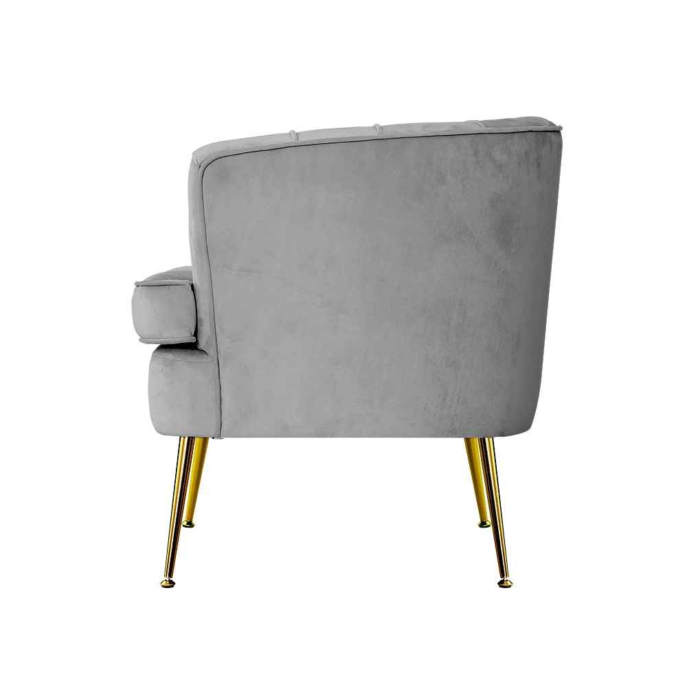Norvia Grey Velvet Accent Armchair with Gold Legs