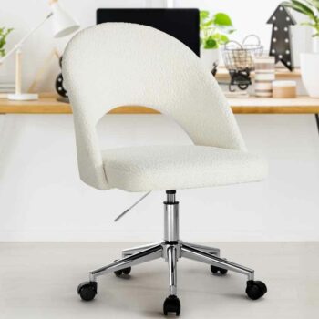 HOLLOWY High Back Armless Boucle Office Chair White & Silver