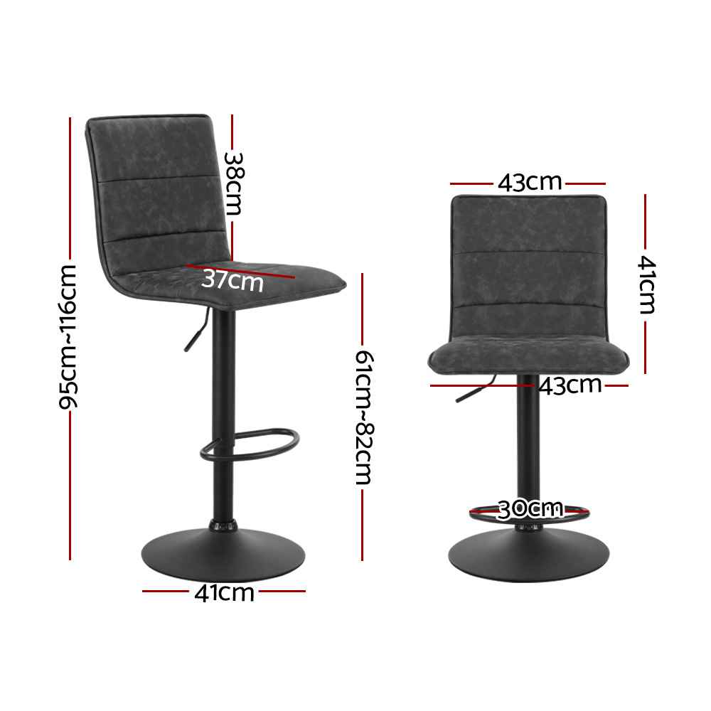 Upholstered in premium PU leather with an extra thick foam-padded seat, these stools deliver superior comfort for everyday use. The supportive high backrest, 360° swivel function, and semi-circular footrest ensure a relaxed seating experience, while the adjustable height makes them versatile for benches, counters, or bar tables.