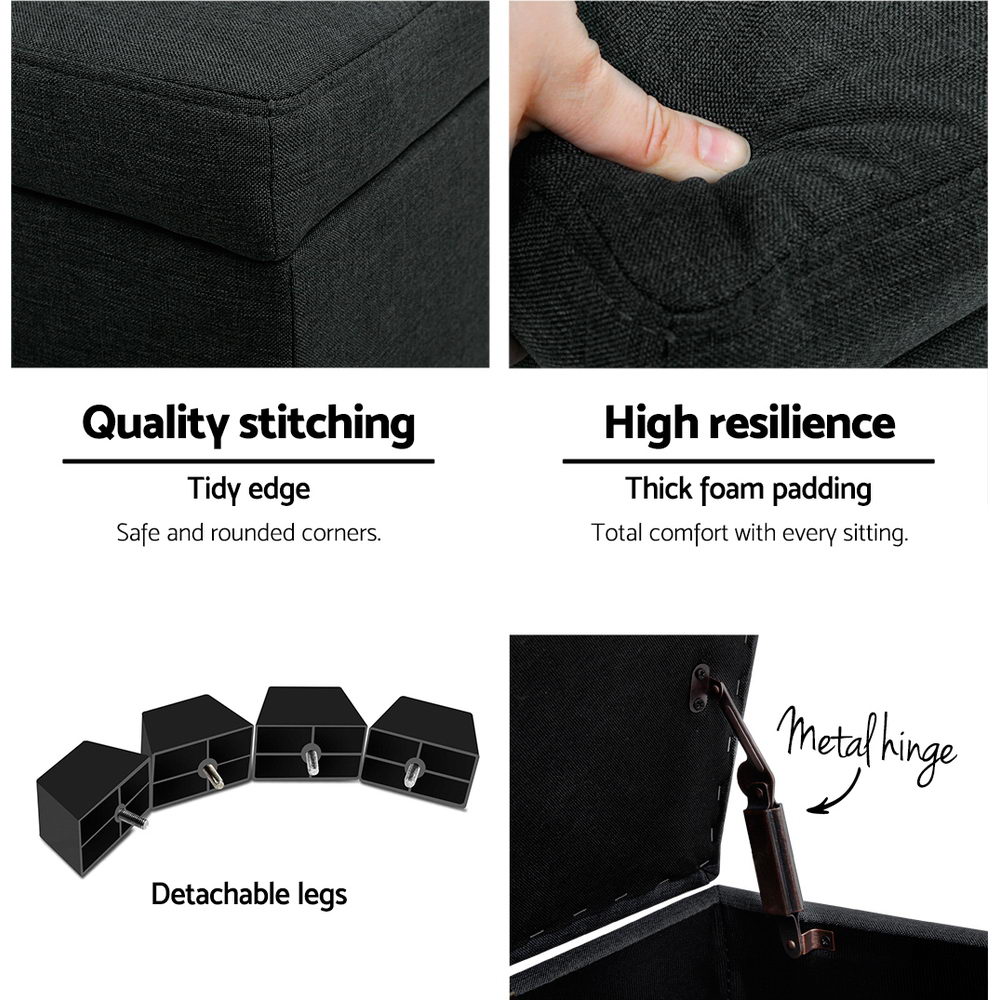 Storage Ottoman Blanket Box 97cm Linen Charcoal