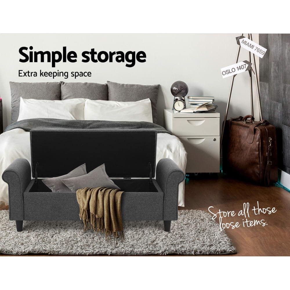 Storage Ottoman Blanket Box 125cm Arm Linen Grey