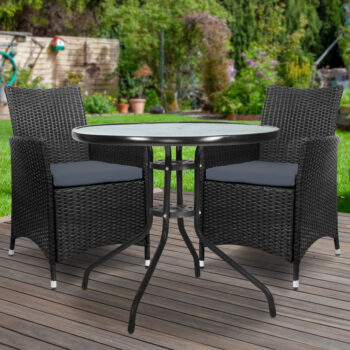 Hugo 3PC Outdoor Bistro Set Rattan Table and 2 Chairs