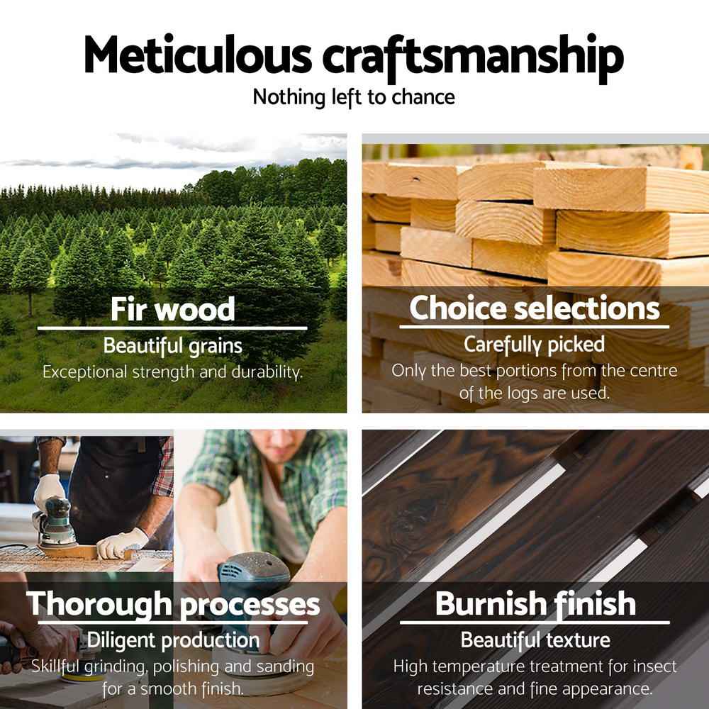 The burnt wood finish gives this bench a weathered, lived-in look that instantly adds historic charm. Natural wood grain variations enhance its character, making each piece feel unique and full of personality.