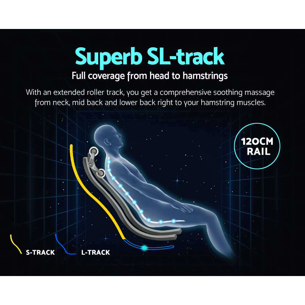 Incorporating the latest smart massage technology, our Ozeni Electric Massage Chair is designed to deliver a truly exceptional massage experience synonymous with the human touch. Among its many technological advancement is an extensive SL track that provides full body massage coverage from your head right to your hamstring muscles. The roller track actually follows the curvature of your spine and extends beyond to your thighs to ensure that all part of your body is amiss with its soothing massages. Better still, the massage chair also has an automatic body scanning function that maps out the key areas of neck and back for a consistent massage. With up to four full body massage programs, eight partial programs and eight complex massage techniques, you are certainly not lacking in choice. Adjustments can also be made for massage intensity and speed as well as width. Not least, you can get to enjoy your zero-gravity massage with your favourite music or eBook via a convenient Bluetooth connection.