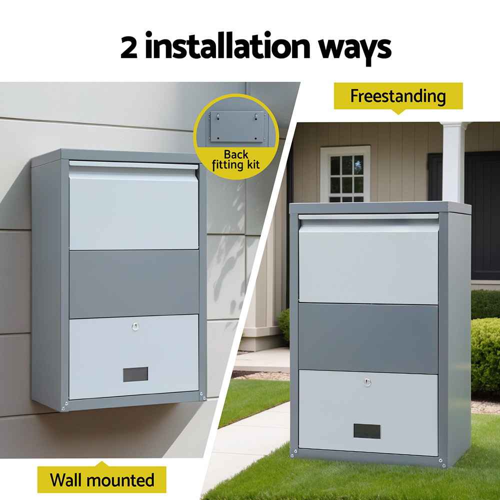 Crafted from tough, water-resistant steel, this parcel drop box shields your packages from weather and tampering. The secured locked cabinet includes two keys for peace of mind, while the 90-degree opening makes it easy for couriers to deposit parcels without hassle.