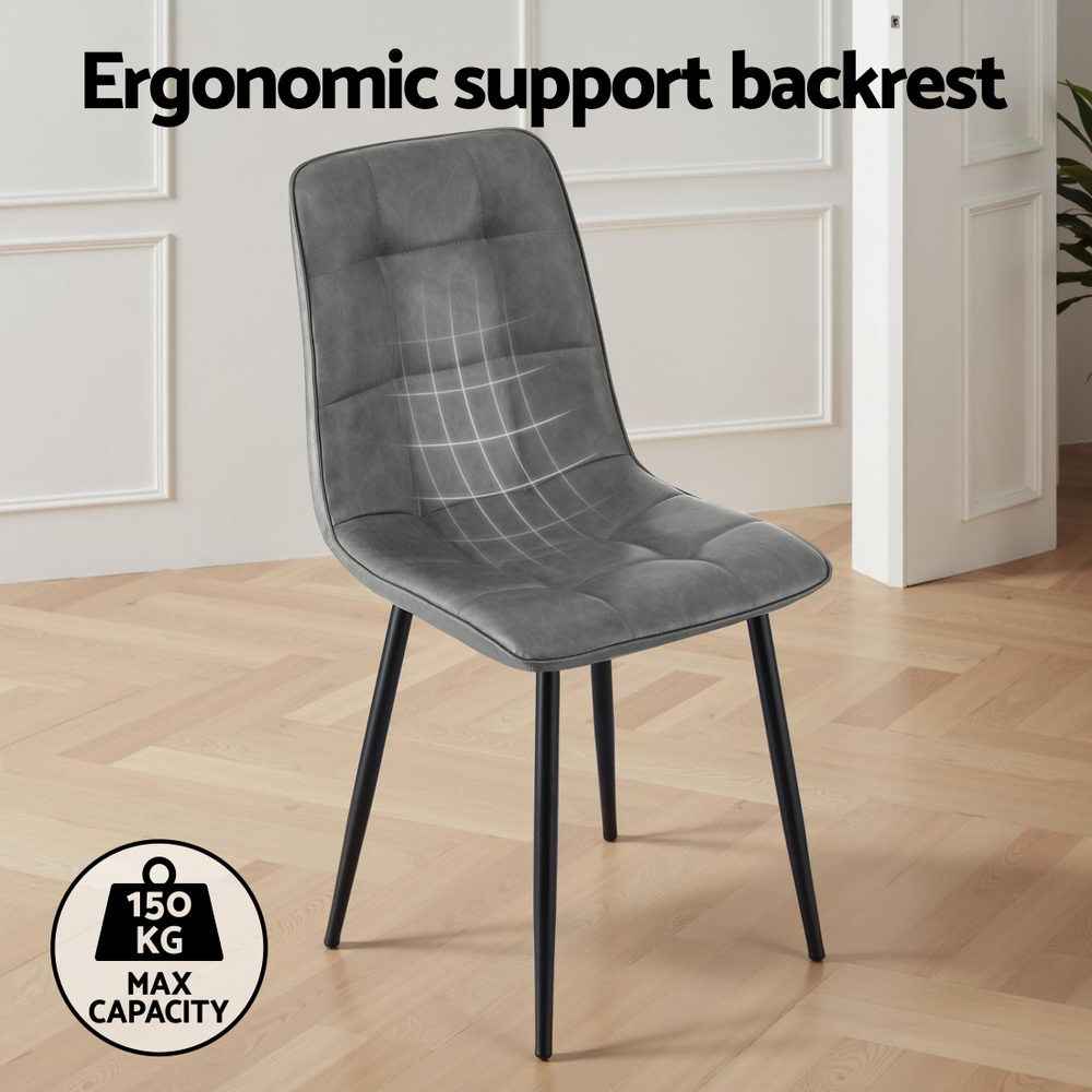 Set of 4 PU Leather Dining Chairs – Grey with Quilted Detailing