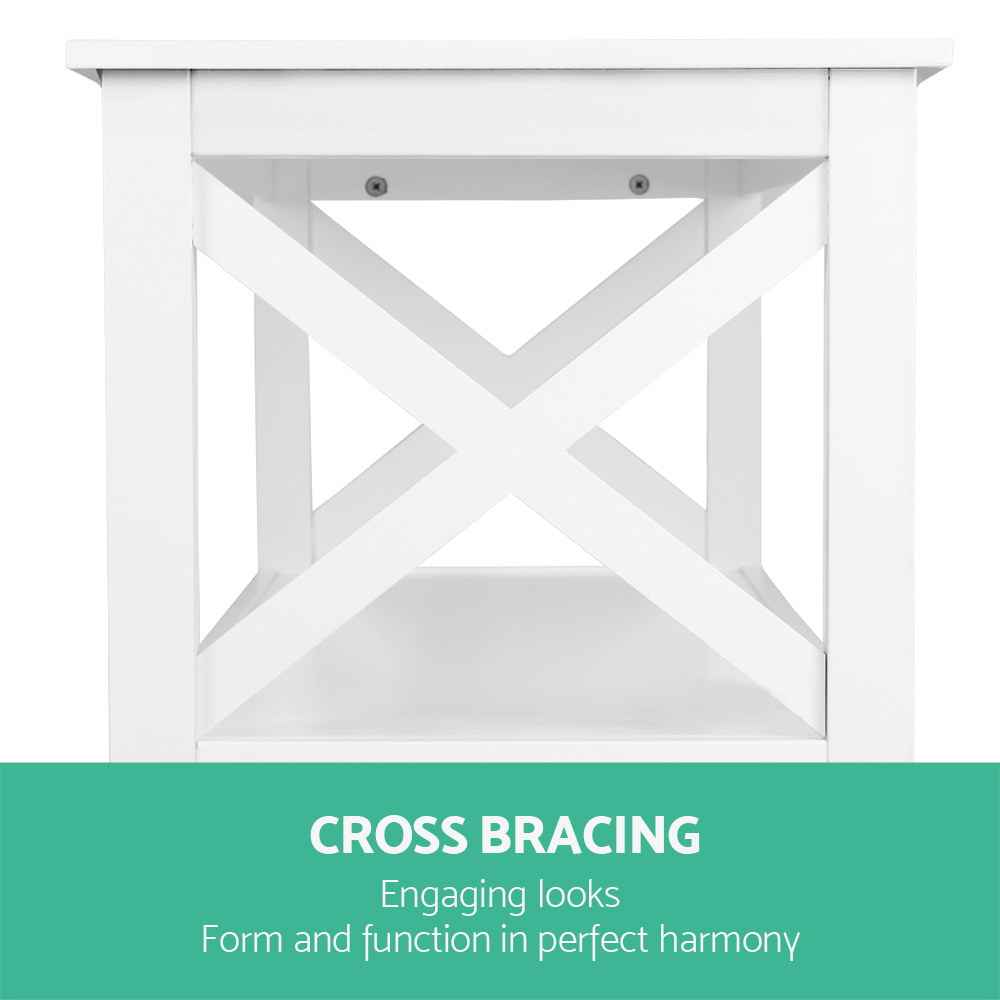 Crafted from eco-friendly E1 MDF board, this Console Table combines durability with timeless design. Its criss-cross side detailing not only adds a distinctive visual appeal but also reinforces stability, making it a piece that is as practical as it is beautiful.