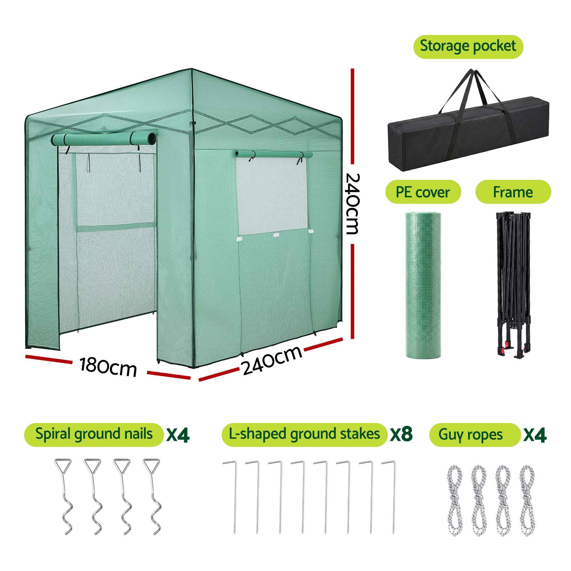 Instant Pop-Up Walk-In Greenhouse 1.8 x 2.4 x 2.4m for Easy Home Growing