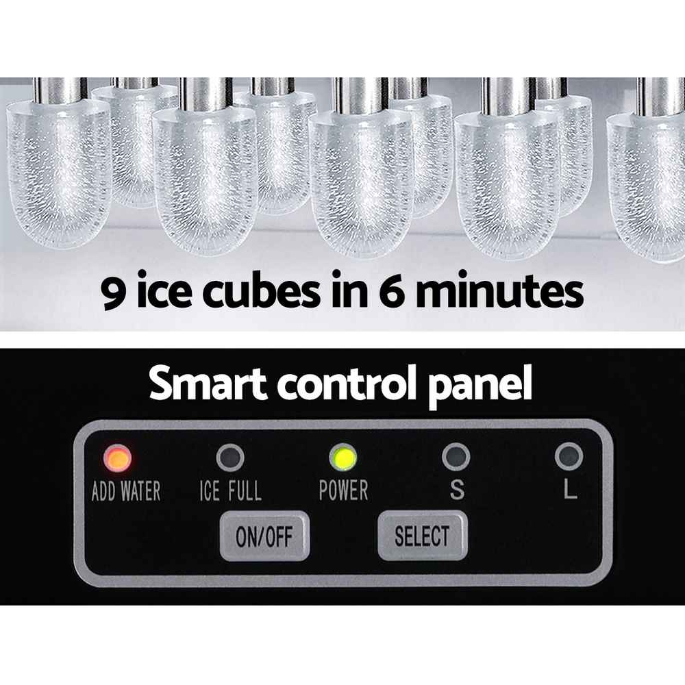 This unit produces 9 ice cubes per cycle, with a cycle time of 6 to 13 minutes depending on ice size and ambient temperature. That means fresh ice is ready quickly, without waiting for freezer trays.