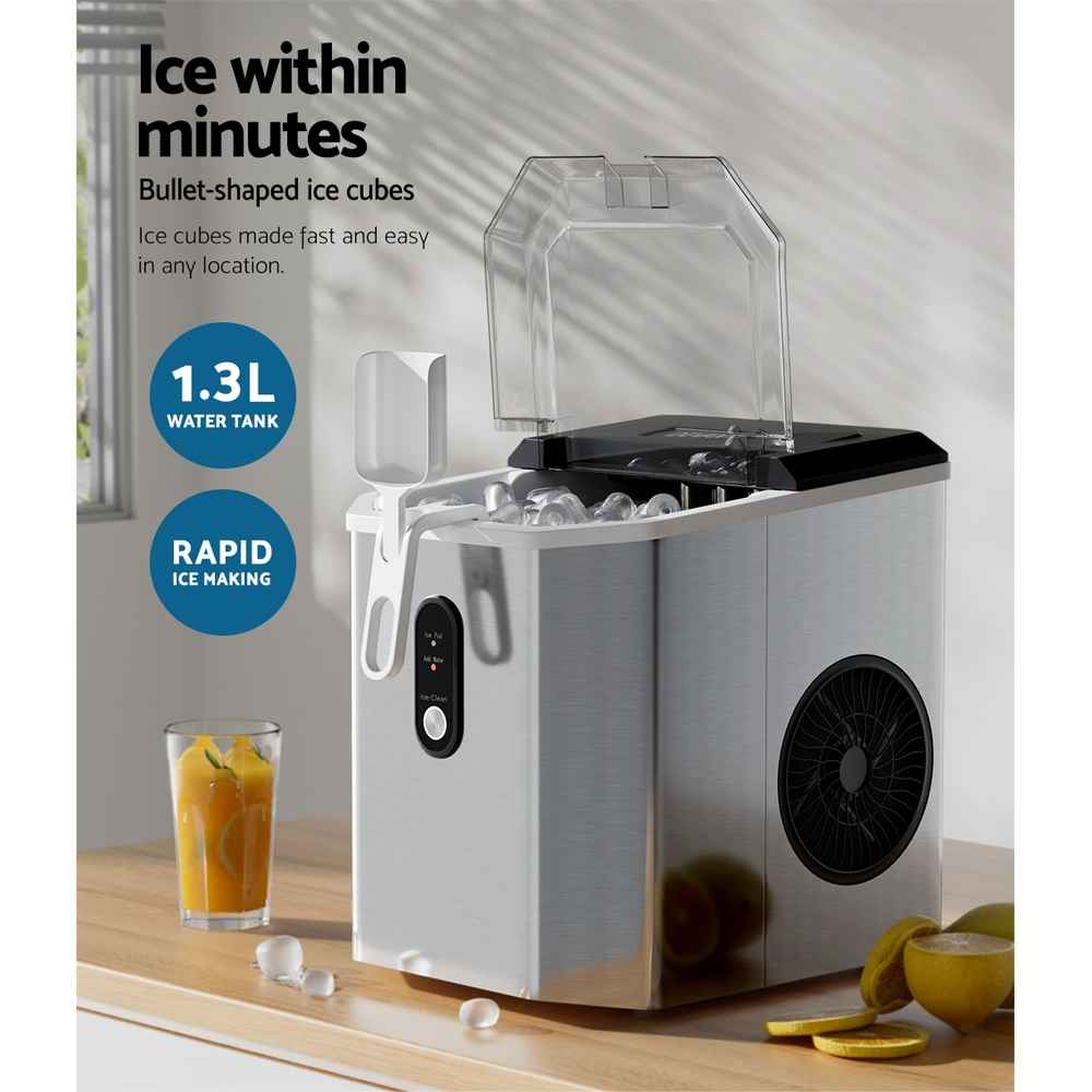 Designed to suit modern homes, this portable ice maker features freon-free refrigerant and enhanced heat dissipation to support low energy consumption. It also runs quietly, making it a great option for open-plan living spaces.