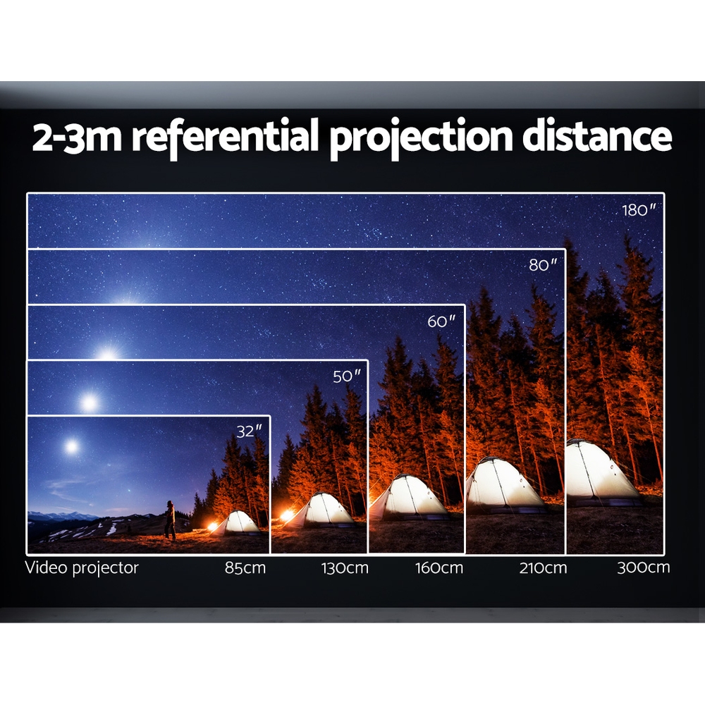 From the small screen to the big screen, now you can enjoy epic entertainment with our Video Projector. With its ultra-expansive colour gamut, the projector delivers crisp clear images with more brilliant colours to give you the best projection experience. The projector is compatible with 1080p and 4k, so you won’t have to compromise on quality. Using 2.4G Wi-Fi connectivity, our video projector effortlessly supports screen mirroring from your Phone, Pad, smartphone, tablet or laptop, so you can stream content cable-free. It features a built-in speaker for clear sound, electrical zoom by remote so you can get a closer look, and a 360-degree flip for flexible viewing. For even more entertainment value, the projector includes HDMI, USB, AV and audio ports for fast connection to multiple devices such as external speakers, game consoles and hard disks. Get the home cinema experience and order today! Include remote control and additional AV audio and HDMI cables.