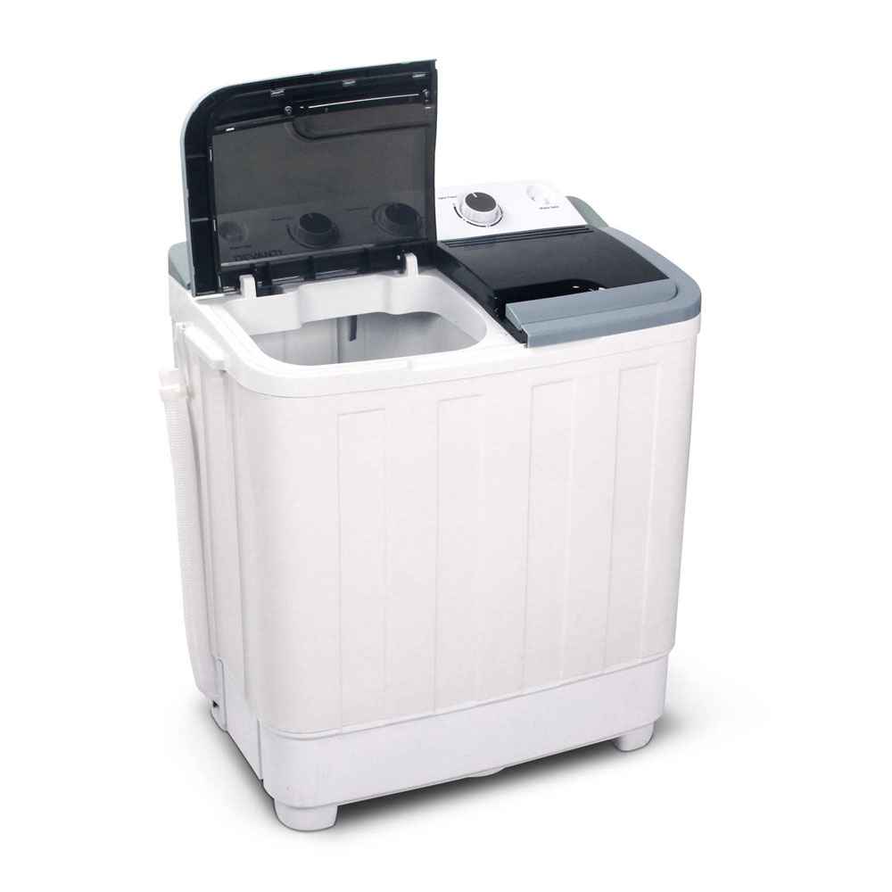 Its twin tub system allows you to wash and spin-dry clothes simultaneously, while the easy-to-use control panel ensures quick adjustments for different fabrics. No plumbing needed – just fill with water, set the timer, and enjoy hassle-free laundry.