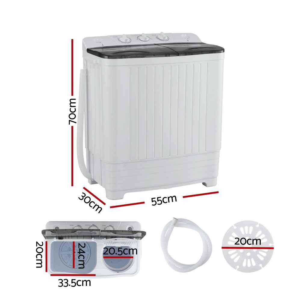 Unleash the power of convenience with this Portable Twin Tub Washing Machine — your perfect laundry companion for apartments, caravans, student housing, or holiday homes. Designed for efficiency, portability, and effortless operation, it lets you wash and spin simultaneously, making laundry day faster and simpler than ever.