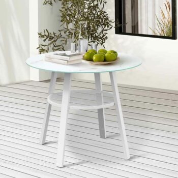 Outdoor Dining Table w/ Storage Shelf White 90cm