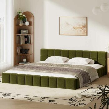 BRED Green Boucle Bed Frame Tufted Headboard Queen