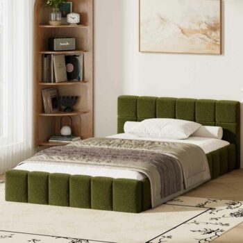 BRED Green Boucle Bed Frame Tufted Headboard King Single