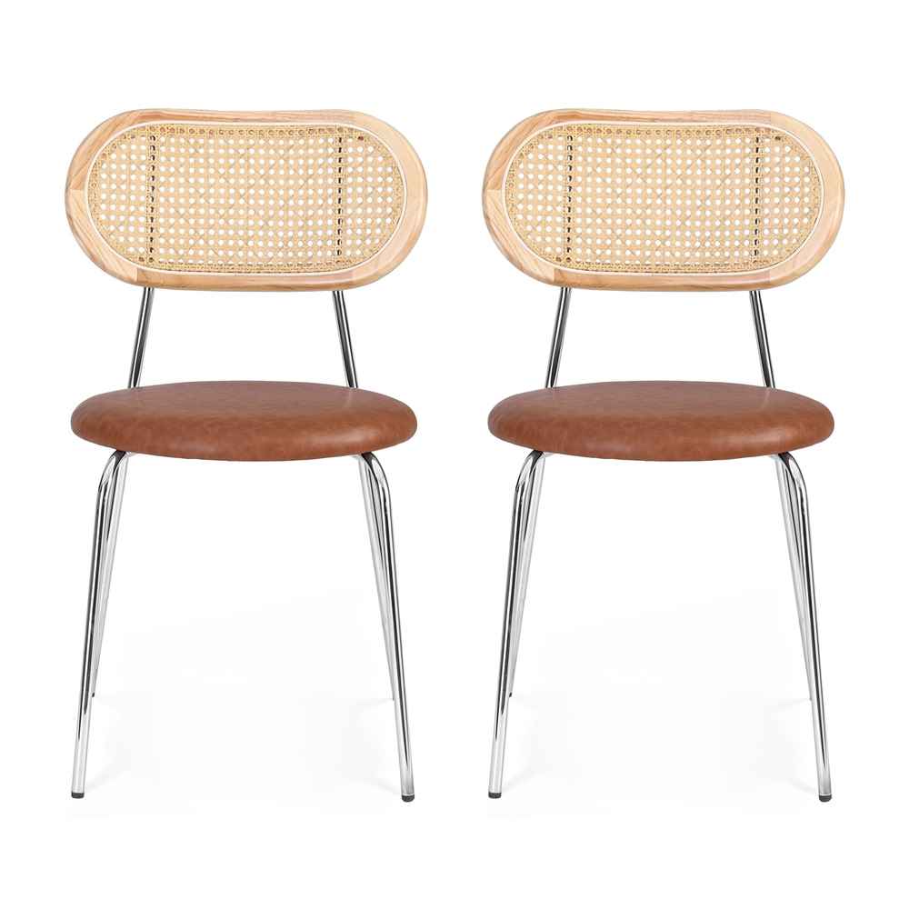 PU Leather Rattan Accent Dining Chairs Brown (Set of 2)