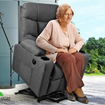 Rukwa Reclining Lift Assist Heated Massage Suede Fabric Chair – Grey