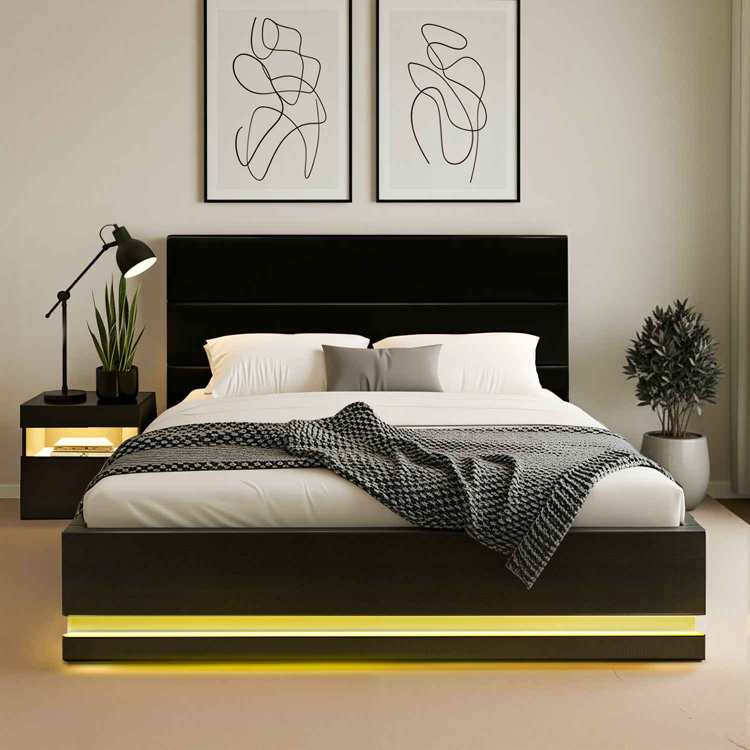 Double LED Bed Frame and Bedside Table Set – Modern Comfort Meets Ambient Lighting