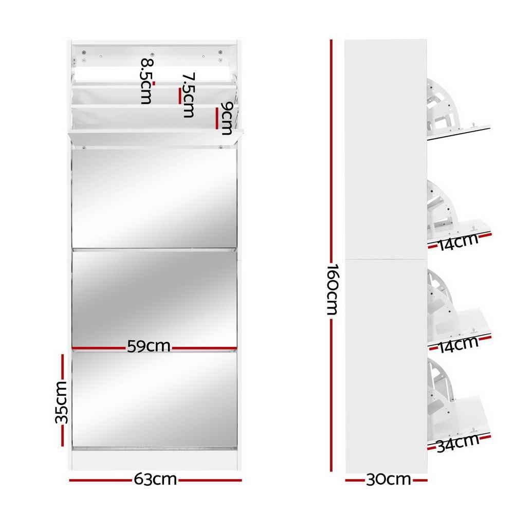 Keep your entrance or dressing area organised while enjoying a full-length mirror in a sleek, contemporary cabinet. Perfect for up to 60 pairs of shoes, this mirror shoe cabinet combines elegance, practicality, and space-saving design.
